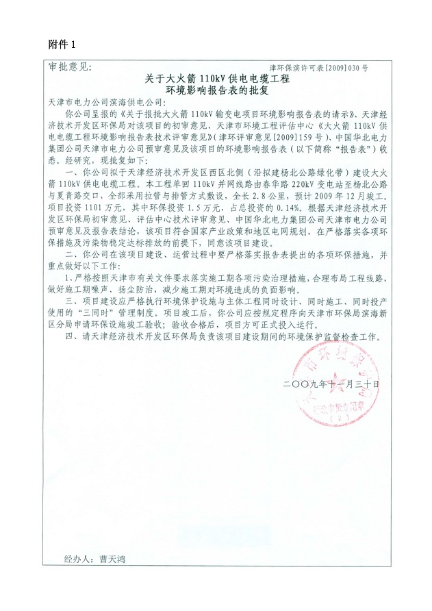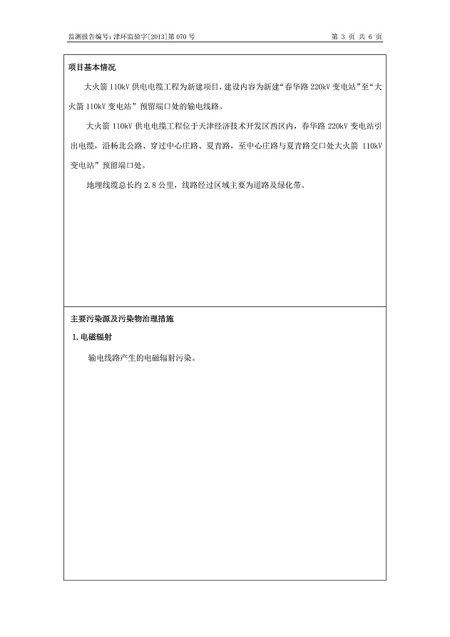 大火箭110kV供電電纜工程環保驗收監測報告表公示